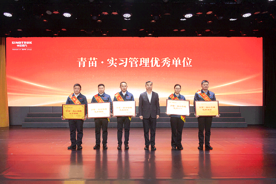 ??為全面總結展示中國重汽集團“青苗筑基計劃”培養碩果,表彰優秀新員工及實習單位,激勵廣大青年才俊挺膺擔當、奮發有為,積極投身集團高質量發展新征程,1月7日,中國重汽集團舉辦2025屆新員工實習表彰會議暨新員工文藝匯演。山東重工集團黨委副書記、董事、工會主席葉建軍,中國重汽集團黨委書記、董事長劉正濤致辭并頒獎,中國重汽集團黨委副書記、董事、總經理劉偉參加活動并頒獎,黨委副書記、董事、工會主席蔣朋朋主持會議并宣讀表彰決定。