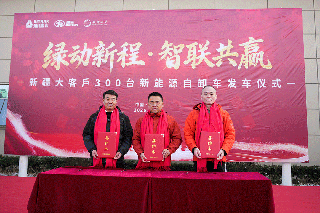 ??隨著發車指令的下達,300臺中國重汽汕德卡新能源自卸車依次鳴笛啟程,沿著既定路線奔赴新疆,正式開啟綠色運輸新征程。現場,新疆客戶表示:“選擇中國重汽汕德卡新能源自卸車,一方面因其完美契合新疆當地環保政策要求,能夠助力企業實現合規運營;另一方面,其運營成本較傳統燃油車降低30%,顯著拓寬了企業的盈利空間。”真實的使用體驗與亮眼的成本優勢,最終贏得了場嘉賓對汕德卡新能源產品的一致贊譽。